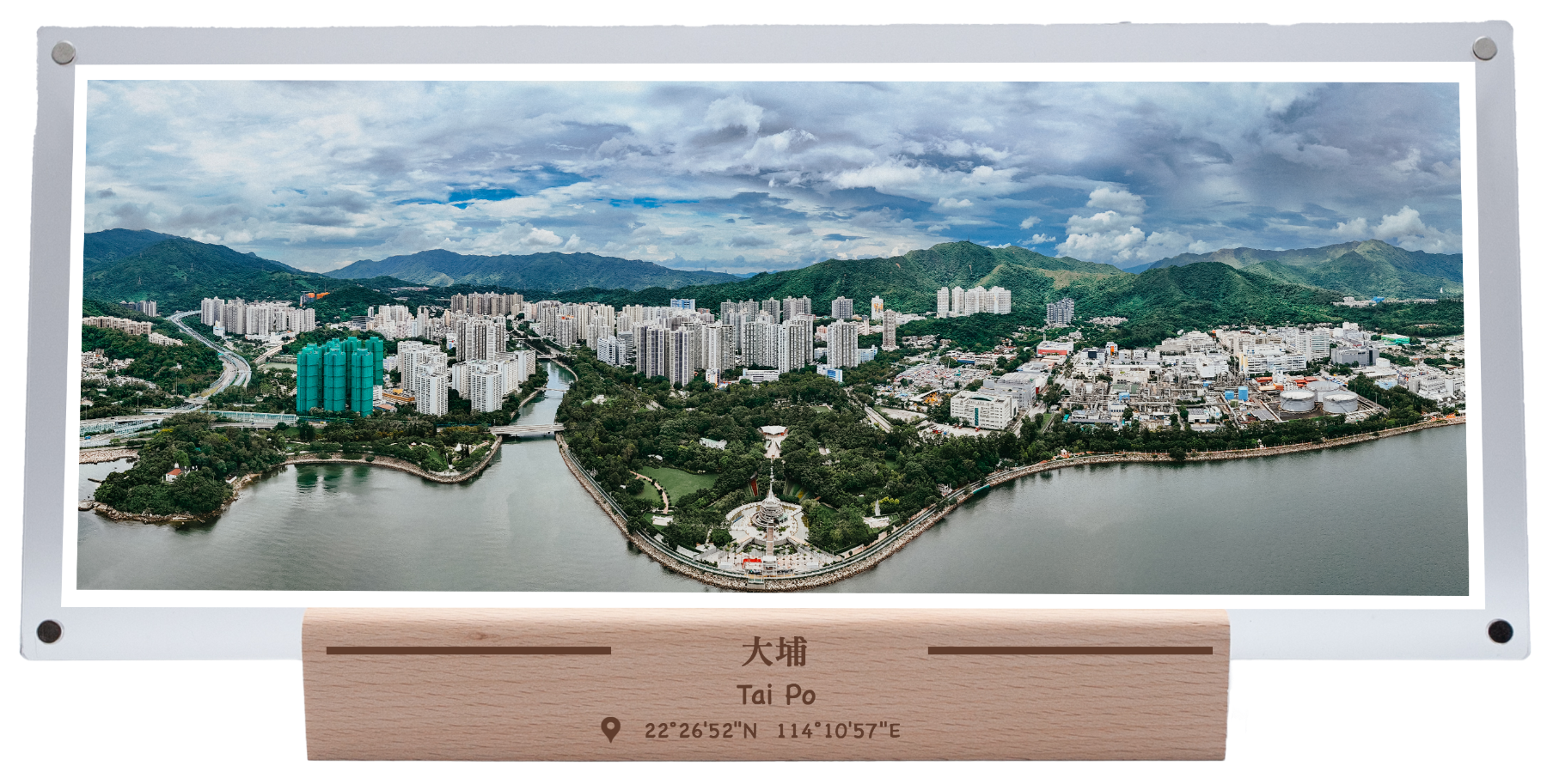 The panoramic photo of Tai Po presents the most beautiful natural scenery in the New Territories East - overlooking the entire Tai Po area from a high altitude, surrounded by the clear waters of Tolo Harbour, the mountains are lush, modern residential complexes are harmoniously integrated with the natural environment, and landmarks such as the Science Park and the Seaside Park are in full view, perfectly showing the unique charm of Tai Po as a "lake and mountain scenery, a livable paradise"!