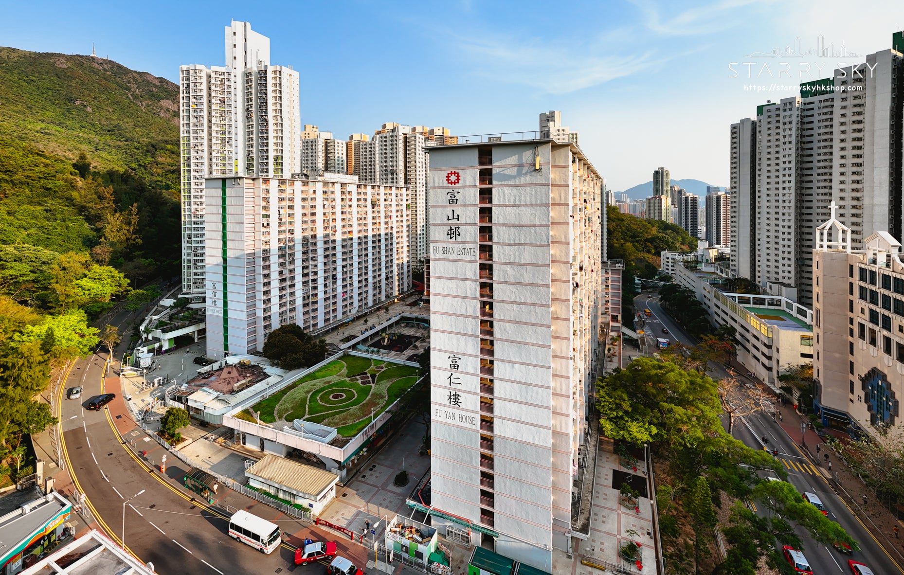 富山邨位於九龍斧山豐盛街,1978年落成,共4座樓宇包括富仁樓、富信樓、富禮樓及2020年新建的富暉樓。前三座採用舊長型設計,富暉樓為Y型非標準設計,外牆呈黃橙色彩。邨內設施完善,包括圖書館、醫務所等,前身為1960年代牛房及1975年清拆的染廠。