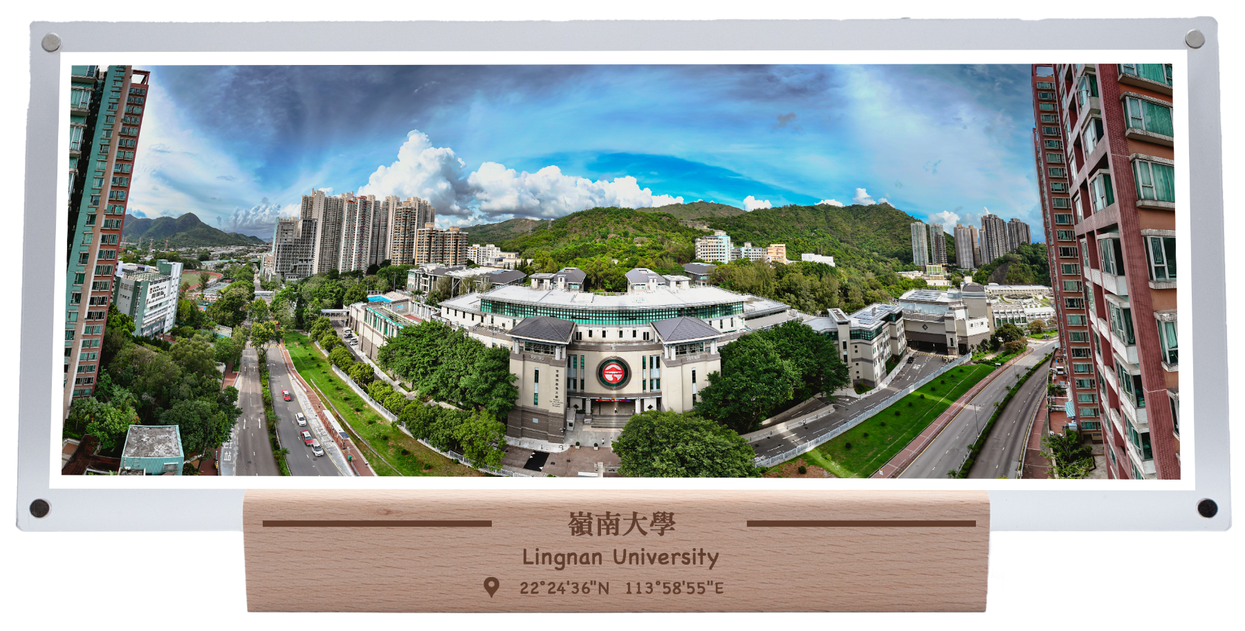 嶺南大學全景相架完美呈現獨特校園風貌 - 從高空俯瞰整個Lingnan University,現代化圓形主樓座落於青山綠水之間,周圍學生宿舍林立,背靠屯門青山,展現出小規模精英教育嘅溫馨學習環境!