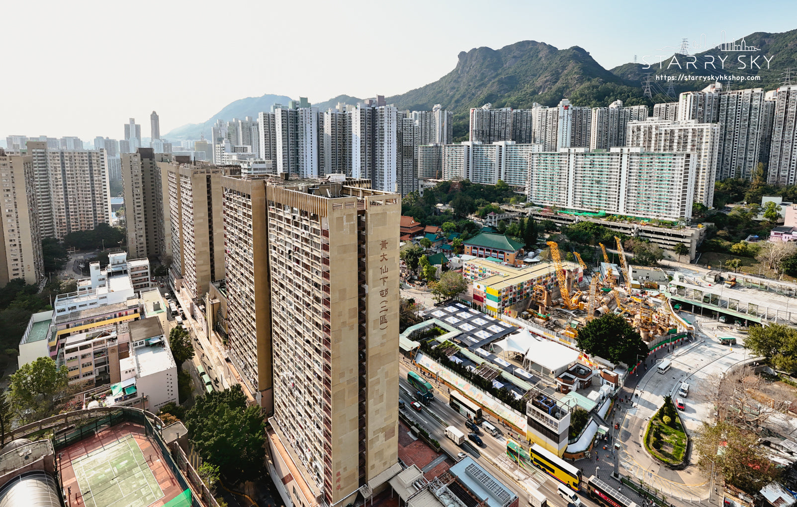 黃大仙下邨位於九龍黃大仙區,是香港最具歷史意義的公共屋邨之一。屋邨採用經典的長型建築設計,外牆以樸實的米色調為主,見證了香港公共房屋發展的重要歷程。其獨特的建築風格與周圍現代化高樓及青山環境形成和諧對比,配備完善的社區設施,展現香港傳統公屋建築的時代特色與文化價值。